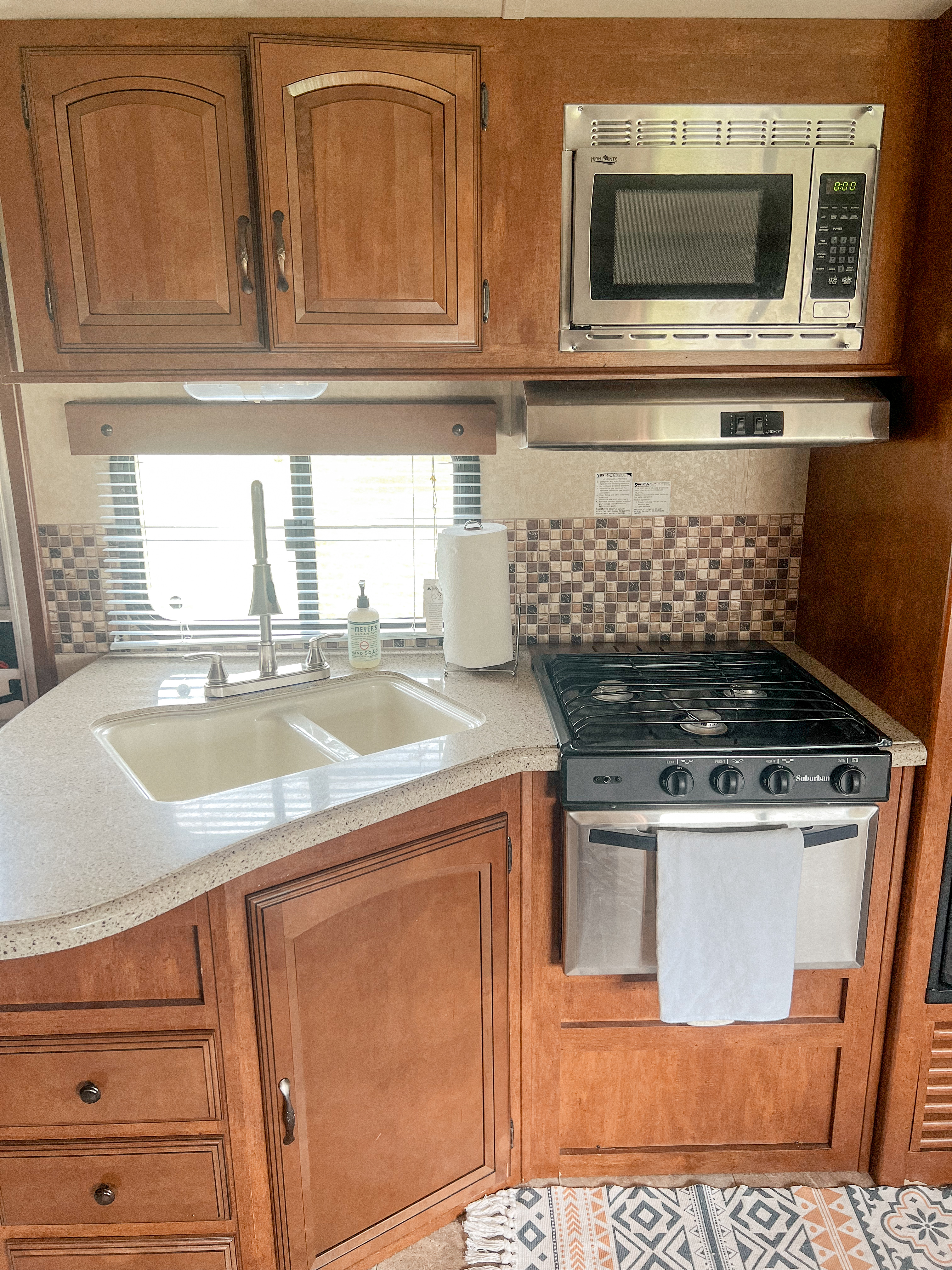 But the fun doesn’t stop there. Rainy days are no problem with plenty of space to hang out inside. The refrigerator keeps your snacks cool, with roomy compartments for both frozen goodies and refreshing beverages. Cook up a storm on the gas range with its three burners and oven, and store all your kitchen supplies in the spacious pantry.